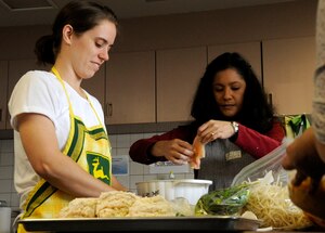 For Misawa, Feb. 4 was no normal day for football, as National Football League cheerleaders, Lauren, Tampa Bay Buccaneers, and Tara, Denver Broncos as well as Washington Redskins players Darrel Young, fullback, and Niles Paul, tight end, watched Super Bowl XLVII with members of the base