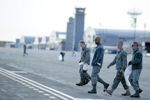 A McDonnell Douglas DC-10, dubbed the "patriot express," carrying military families, Department of Defense civilians and contractors arrived here April 25. Approximately 500 individuals took advantage of the three chartered missions, commissioned specifically to reunite family members with their