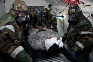 Reports of missile attacks, in-bound aircraft, and special operations forces penetration flood the Emergency Operations Center at Misawa Air Base, Japan, as the 35th Fighter Wing participates in its first operational readiness exercise of the year. The base-wide exercise, scheduled Jan 23 to 27, is