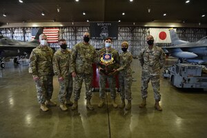 U.S. Air Force Col. Jared Hutchinson, 35th Operations Group commander, presided over a change of command ceremony where Lt. Col. Jonathan Cichowski relinquished command of the 13th Fighter Squadron to Lt. Col. Jordan Kahn at Misawa Air Base, Japan, May 21, 2021.