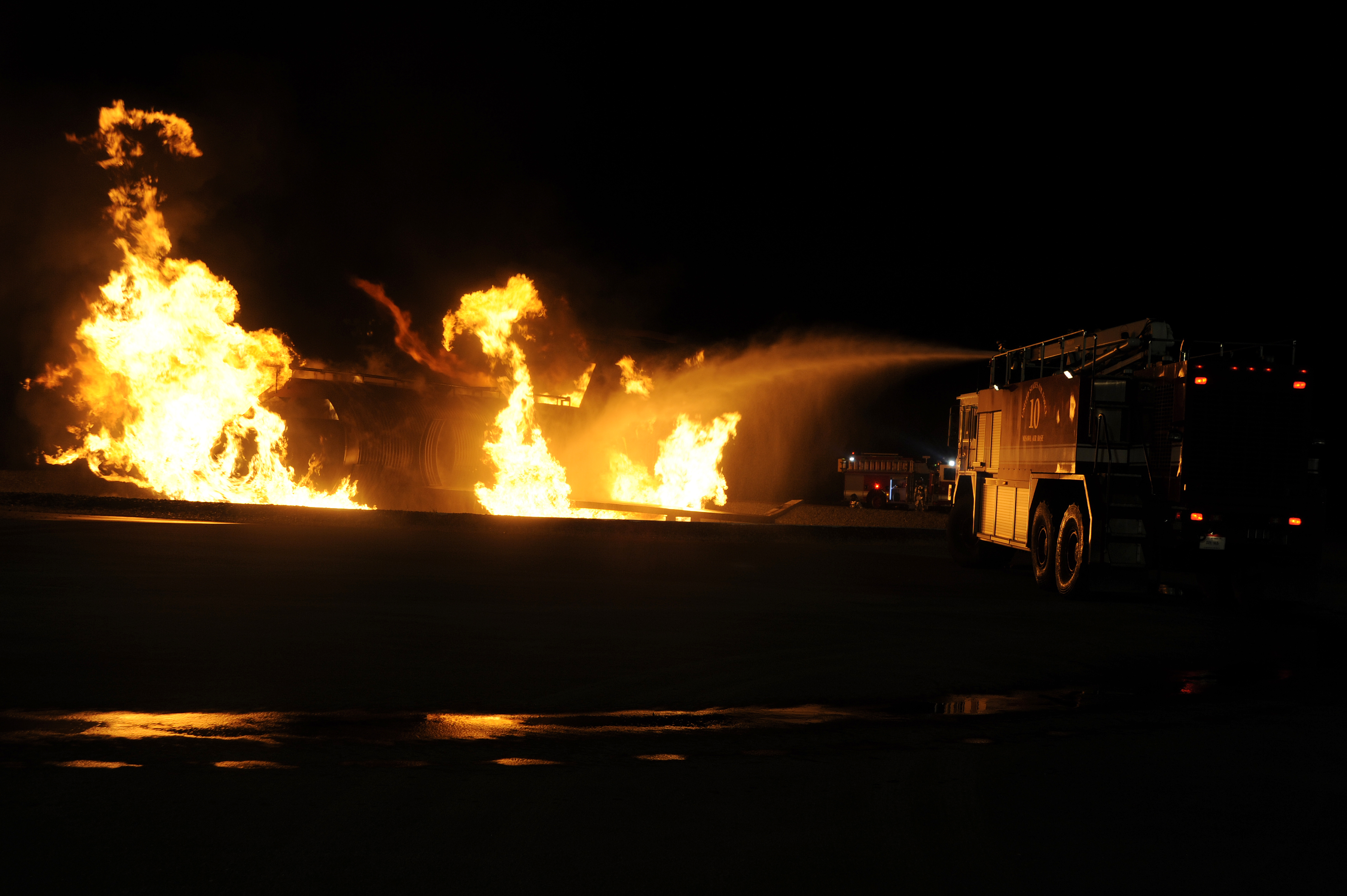 Sparky the Fire Dog and Smokey the Bear compete in a dance-off at a nighttime firefighting demonstration during Fire Prevention Week at Misawa Air Base, Japan, Oct. 10, 2012. Fire Prevention Week was established to commemorate the Great Chicago Fire, a tragic 1871 urban blaze that killed more than 250 people, left 100,000 people homeless, destroyed more than 17,400 structures and burned more than 2,000 acres. (U.S. Air Force photo by Tech. Sgt. Marie Brown)