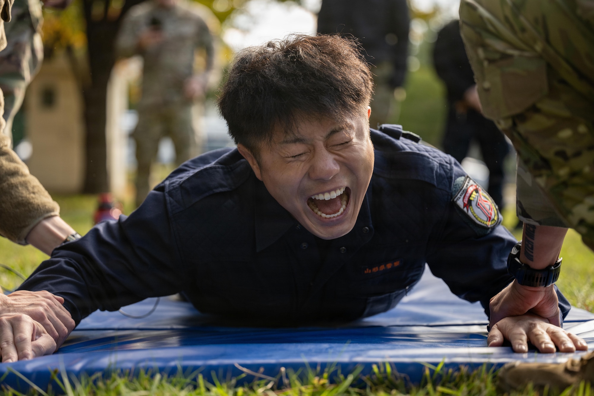 A Japanese National Police Special Investigation Team patch is displayed during a joint special weapons and tactics training event at Misawa Air Base, Japan, Oct. 23, 2025. Through shared close-quarters and breaching drills, participants improved communication and precision under pressure, directly advancing the 35th Fighter Wing’s mission of rapid, coordinated response. (U.S. Air Force photo by Airman Hannah Bench)