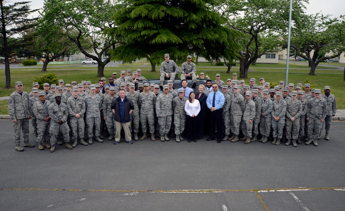Members of the 35th Communications Squadron stand with the Command Cyber Readiness Inspection team May 14, 2015 at Misawa Air Base, Japan. Misawa received the highest ratings in the Department of Defense for secret and non-classified network security. (U.S. Air Force photo by Staff Sgt. Derek VanHorn/Released)